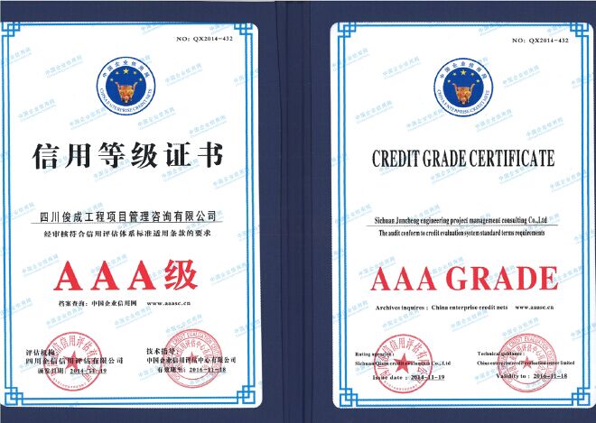 信用等級滿意證書