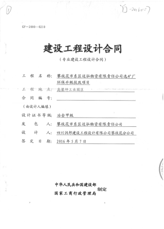 攀枝花市東區邁鴻物資有限責任公司選礦廠環保升級技改項目