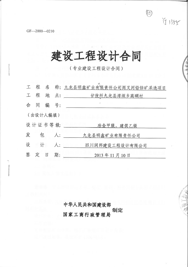 九龍縣明鑫礦業有限責任公司兩叉河鉛鋅礦采選項目