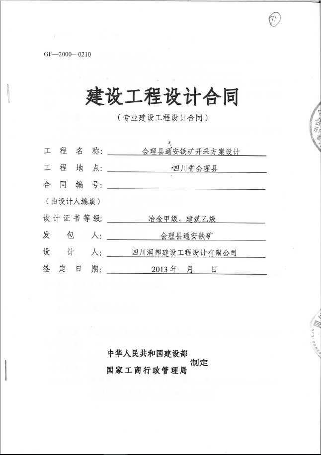 會理縣通安鐵礦開采方案設計