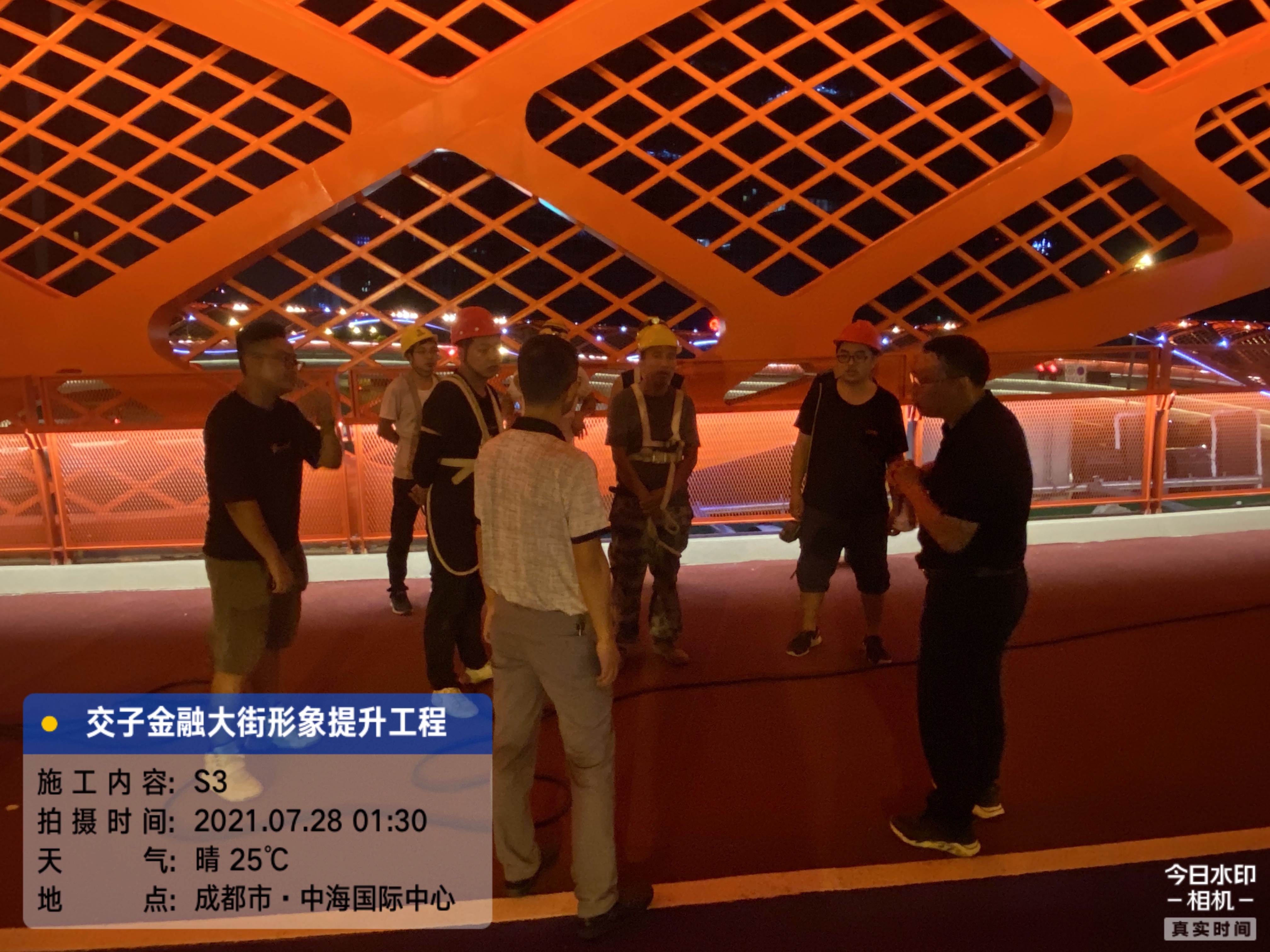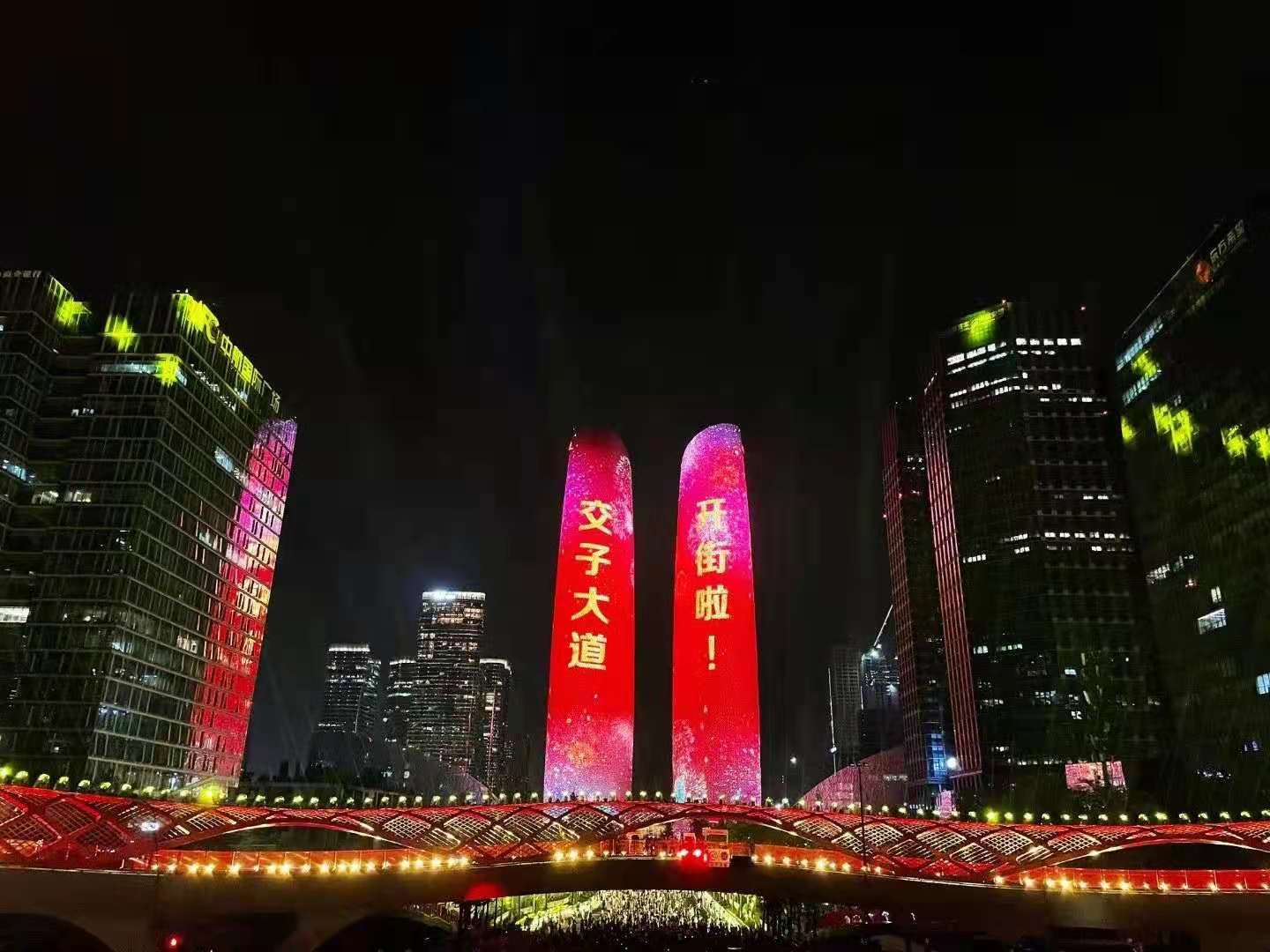 交子之環大橋內直徑達96米,外直徑達114米,鋼結構,總重量達3274噸,集通行、休閑、商業等多功能為一體的多元場景的人行天橋。在施工過程中采用了三維數字模型、焊接機器人仿真模擬焊接等新工藝,加大了監督管理的難度。